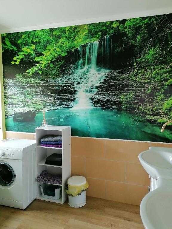 Our accommodation also offers 2 daylight bathrooms. A large bathroom with a shower and a small bathroom with a separate toilet and hand basin. There is also a washing machine in the large bathroom. We do not provide detergent due to possible allergies, etc.