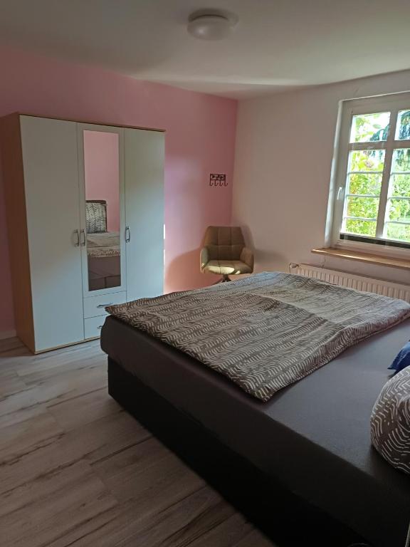 Die Ferienwohnung „Am Atelier“ ist mit drei separaten Schlafzimmern ausgestattet. Zur gemeinschaftlichen Nutzung verfügt sie über eine Küche, einen geräumigen Eingangsbereich sowie einen Wohnbereich mit Flachbild- SAT-TV.
