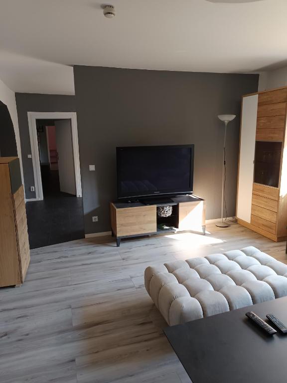 The holiday apartment “Am Atelier” is equipped with three separate bedrooms. For shared use, it has a kitchen, a spacious entrance area and a living area with a flat-screen satellite TV.